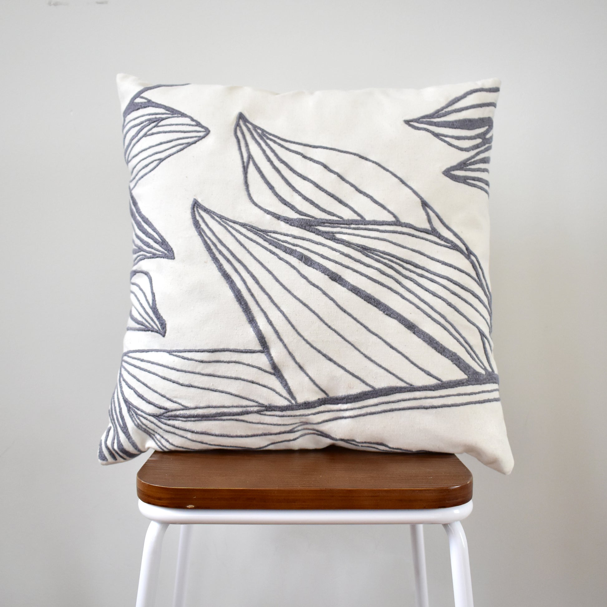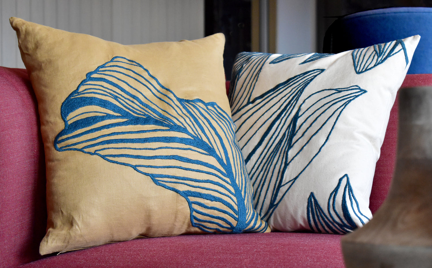 Soft cotton canvas embroidered by artisan women in Yucatan, Mexico. Inspired by a variant of the snake plant, Viera comes to life thanks to the talented artists which skillfully manipulate sewing machines to create these intricate designs full of movement and luxurious craftsmanship.