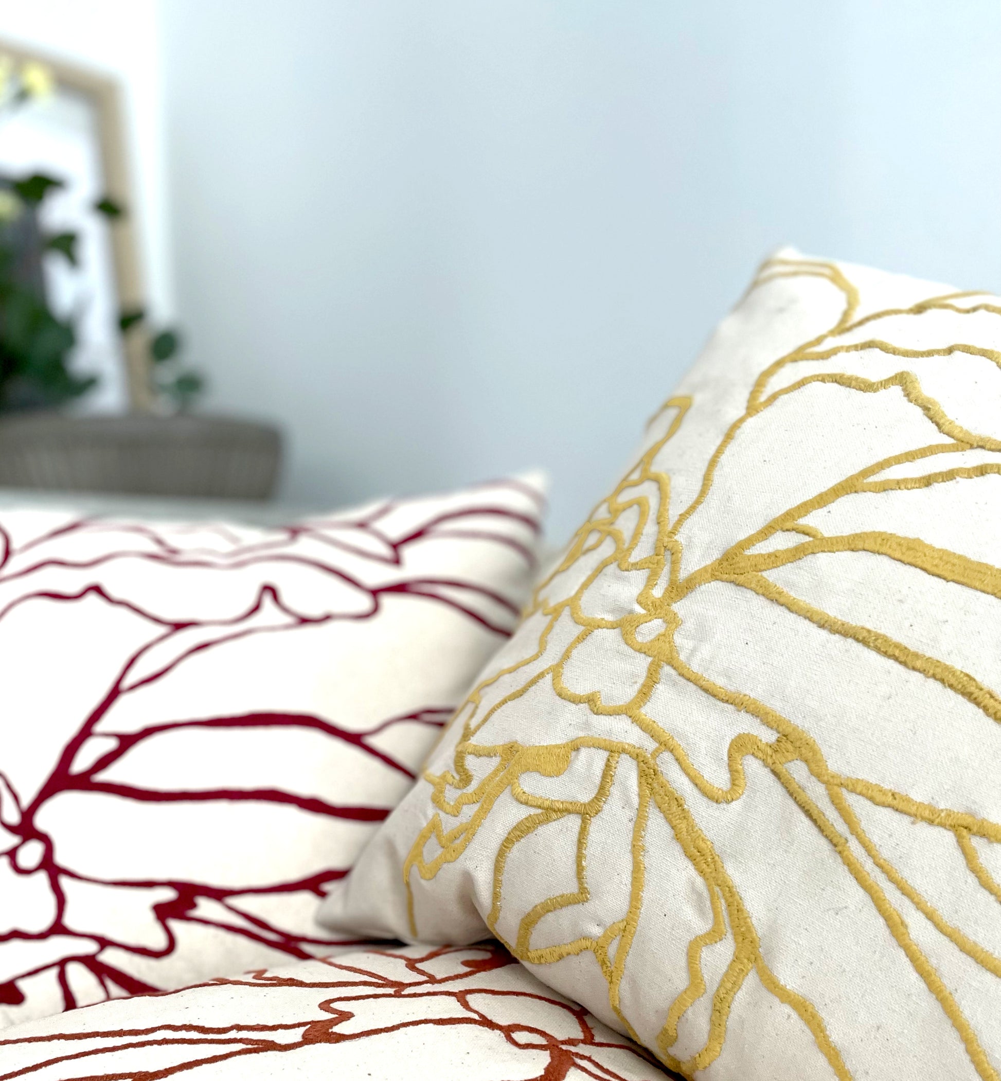 Inspired by the beautiful peony's, Mella's intricate design is made by the skillful hands of artisan women from Yucatan, Mexico. Their embroidery technique consists of manually manipulating a sewing machine, slowly bringing to life delicate and rich pieces.